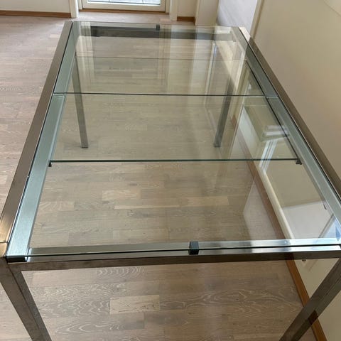 Moderne spisebord i hærdet glas – 140x80 cm (Som nyt)