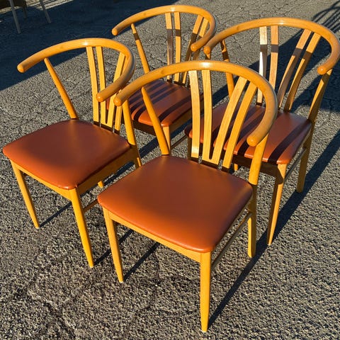 Sælger 2 stk. CASØ Peter spisebordsstole i flot, tidløst design. Stolene har stel i massivt træ og sort polstret sæde i kunstlæder/læderlook. Klassisk dansk design, som passer perfekt til både moderne og mere traditionelle hjem.