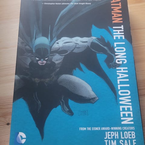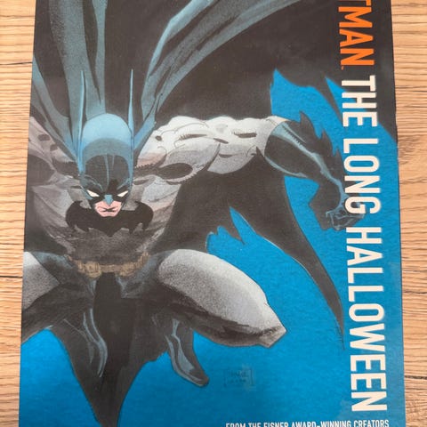 Batman Den Lange Halloween tegneserie med illustrationer og tekst. Indeholder historier om Batman, der foregår i Halloween-tema. Velegnet til fans af superhelte og tegneserier. På dansk