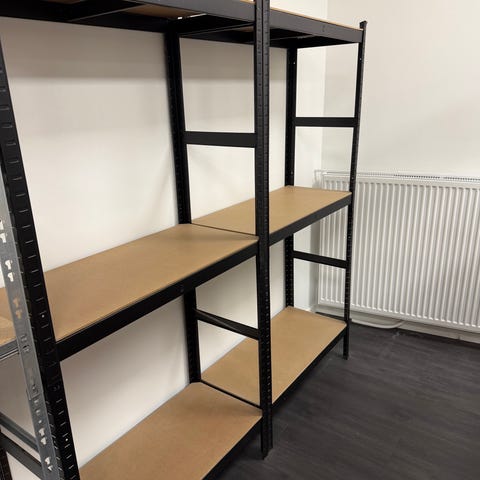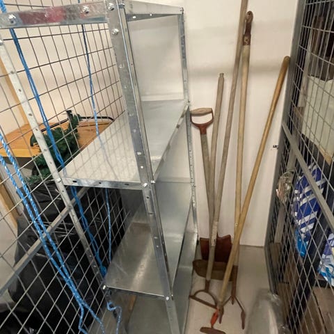 Metal reol med 5 hylder i grå farve. Reolen er velegnet til opbevaring af forskellige genstande og kan anvendes i hjemmet, garagen eller på kontoret.