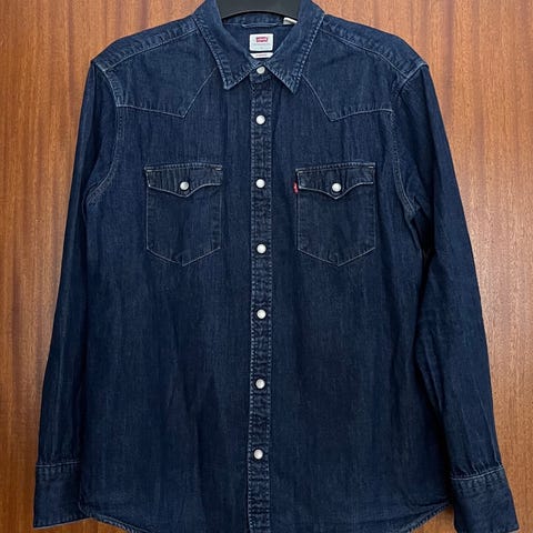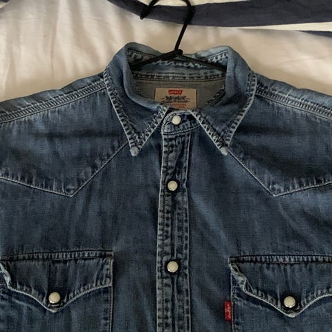 Levi's vintage denim skjorte i lyse blå farve, størrelse L til Skjorten har korte ærmer.