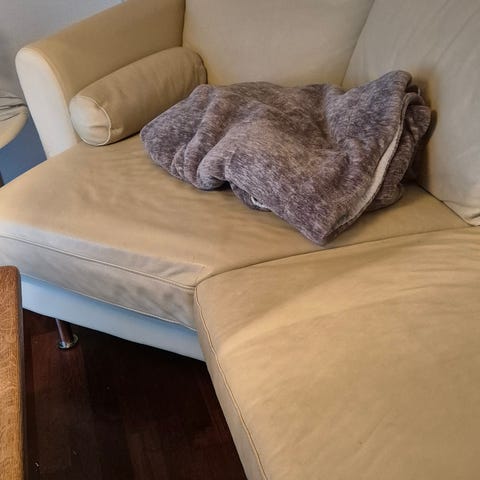 Sofaen er brun og grøn - farven skifter lidt. Kunne være super fin i fx er sommerhus.
