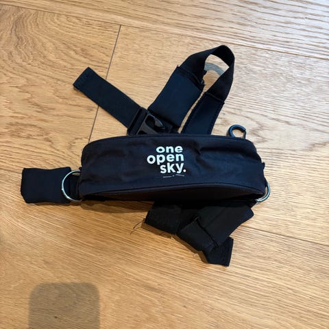 Skisele til at spænde på små børn, der skal lære at stå på ski. Kun brugt en gang, så den er som ny.