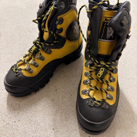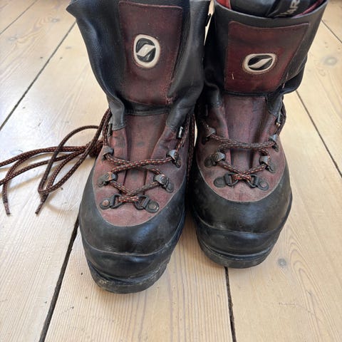 Meindl Mountaineering støvler i størrelse 41 med en meget stiv sål. Støvlerne har vibramsål og kan bruges med diverse steigeisen/crampons. Designet til bjergbestigning og udendørs aktiviteter.