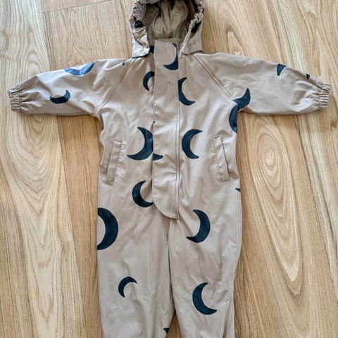 Super fint regnsæt fra Kongens sløjd i mørkeblå - jakken med små guldstjerner i strl 80/86.