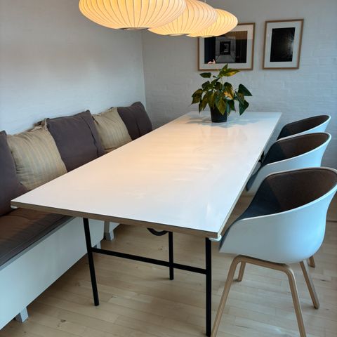 Er brugt til skrivebord. Så kunne godt trænge til lidt behandling af bordplade, dermed pris sat efter dette.