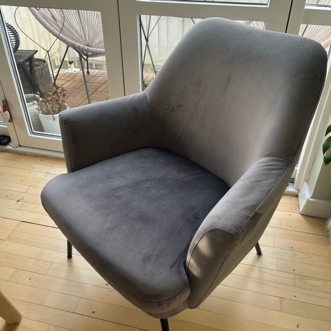Fin lænestol fra jysk – købt til 1699. Fejler ikke noget, men har lidt tegn på brug. Betrækket kan tages af og evt. vaskes.
