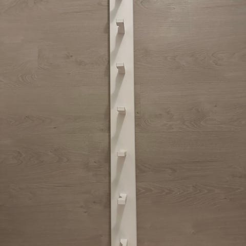 2 IKEA Kubbis knagerækker i hvid med 7 knager hver til ophængning. Kan bruges til opbevaring og organisering i hjemmet, for eksempel i entré, køkken eller badeværelse.