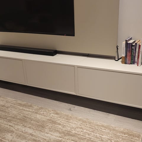 Sælges grundet flytning, alle møblerne er fra Ikea og er ca. 1 år gamle i rigtig god stand. Ikke nogle brugstegn, udover et savet hul i toppen til ledninger, samt et lille hul i bagpladen til forlængerledning. Der medfølger også vægbeslag.