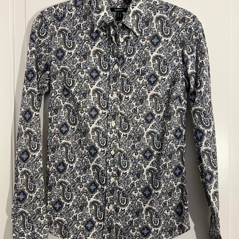 Utrolig flot og smart skjorte. Evt. til en konfirmand. Ej brugt. Mønstret i bundfarve beige, med brun og lidt blåt og sort. Passer til alt også evt til blå mandag. Kan afhentes i Viby J eller sendes på købers regning.
