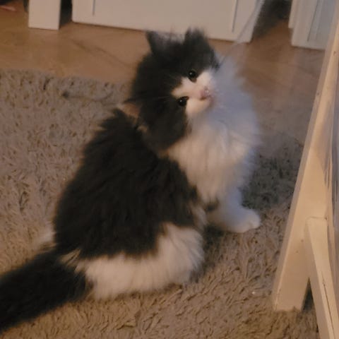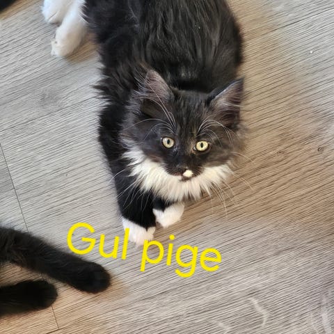 Hun killing. Begge forældre er mix af huskat og Maine Coon. Hun er 100% renlig og passet med ormekure. Fodret med kvalitets killinge foder. Der medfølger tørfoder og endnu en ormekur. De sidste billeder er af mor og far