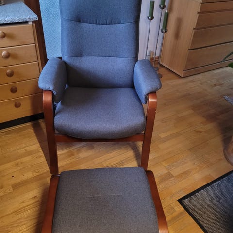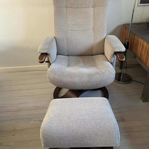 Fine otium stole i gråt stof. Fejler intet. Brugt sparsomt. Begge stole sælges for 800,- kr. der medfølger fodskamler. Stolene er fra Daells bolighus