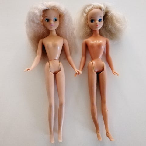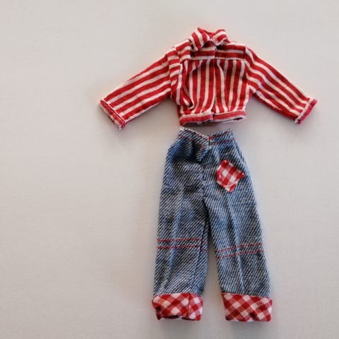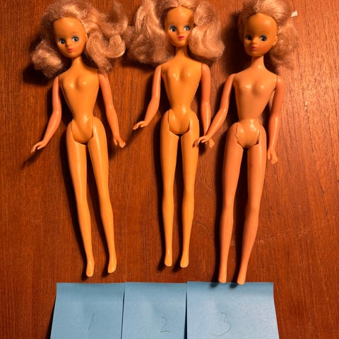 Forskelligt tilbehør til Daisy dukken. Telefon og tefonrør er uens falmet. Samlet salg og pris.