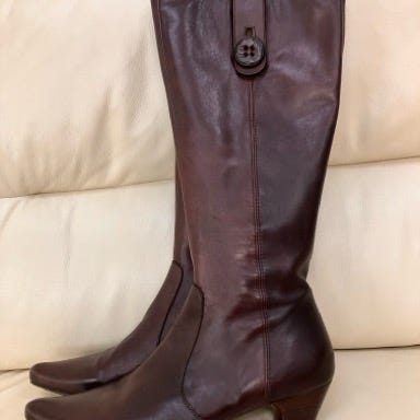 Ankelstøvle i brun præget skind, brugt et par gange, meget få brugsspor. Kan ikke finde dem på deres hjemmeside mere, nypris var 1600 kr