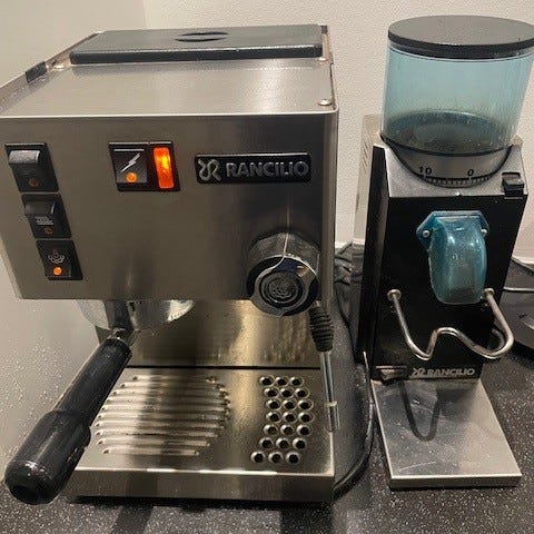 Rancilio Rocky SD‑elektrisk kaffekværn i fin stand. Den leveres med en næsten fuld Urnex GRINDZ (til rengøring af kværnen, nypris 125 kr.) samt nye kværner (nypris 205 kr.).
