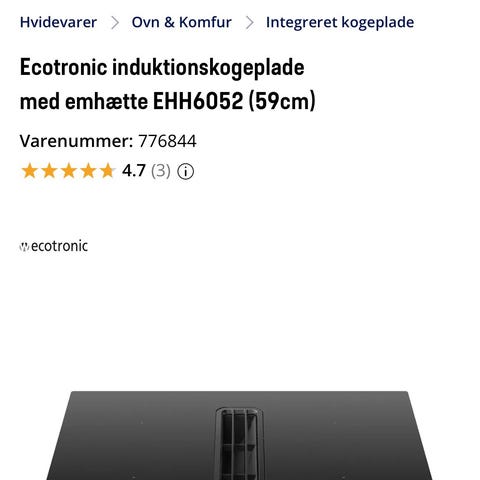 EICO induktionskogeplade med sug. Se billede for model og information.