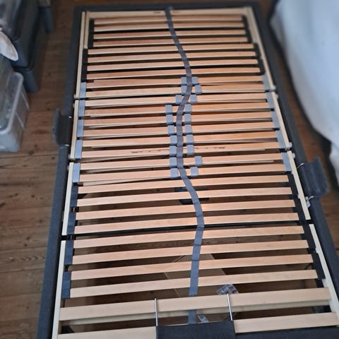 Pæn elevationsseng (usikker på mærket) med målene 200x120 cm. Sengen har justerbar elevation og er udstyret med en fjernbetjening til styring af funktionerne. Madrasoverfladen er hvid med et bølget mønster, og sengen har en sort bundramme. Har altid været brugt med ekstra top-madras. Der er aldrig sovet på den topmadras der medfølger. Afhentes København K på 3. Sal