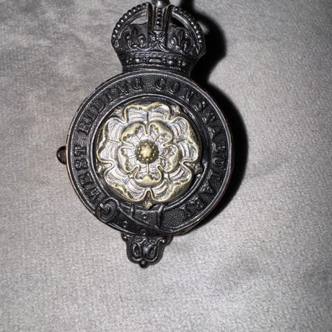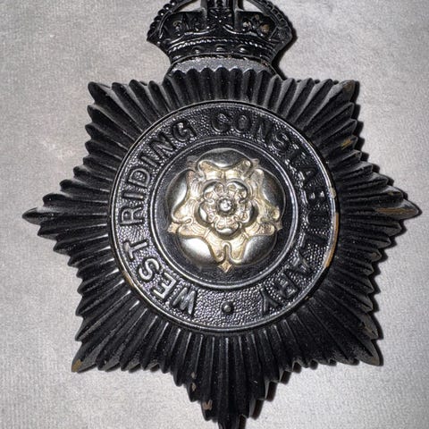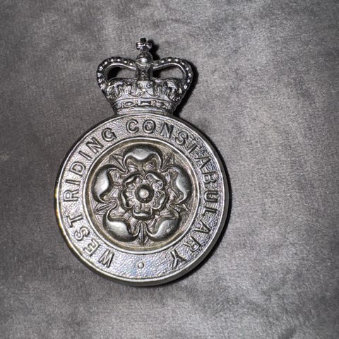 2 West Yorkshire Constabulary mærker, den store til hjelm og den lille til kasket. Blev brugt fra 1968-1974.