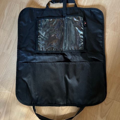 2 stk. Reer opbevaring til bil med flere lommer og justerbare stropper. Fremstillet i gråt stof med sort kant og lommer. Designet til at holde orden på ting under køreturen.
