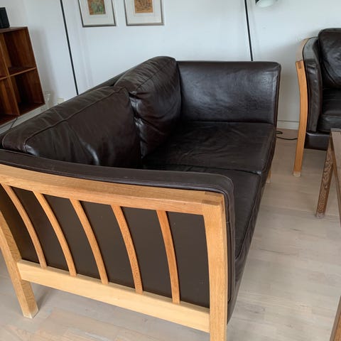 Lædersofa i brunt læder