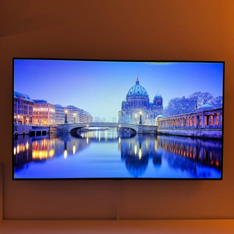 LG OLED TV stand designet til 55 tommer TV. Standen er i metal med en buet form og grå farve. Til LG55 B7 modellen