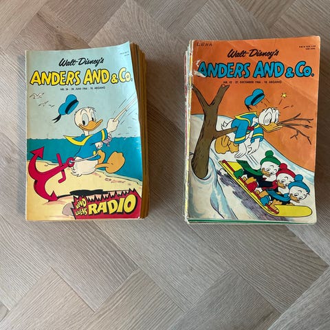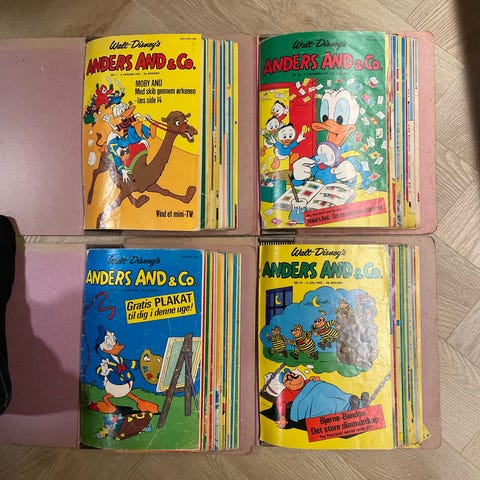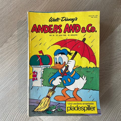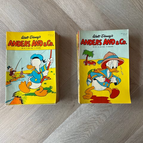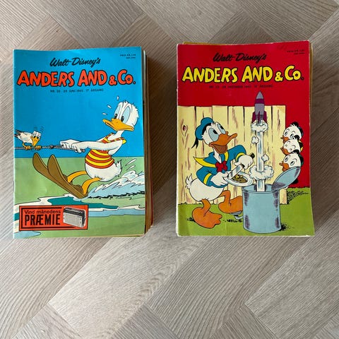 Walt Disney Anders And & Co. tegneserieblade med forskellige historier og illustrationer. Serien indeholder klassiske tegneserier med kendte figurer som Anders And og Mickey Mouse. Egnet til samlere og læsere af tegneserier.