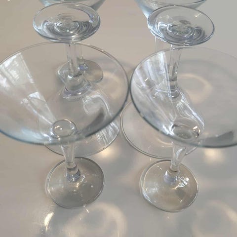 9 stk fine og næsten ubrugte martiniglas / cocktailglas. Ideelle til drinks.