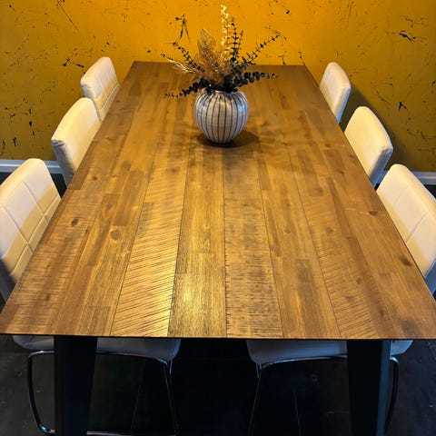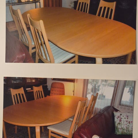 8 stole i fyrretræ medfølger