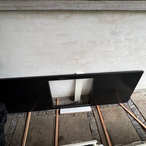 Granit Køkkenbordplade med integreret vask. Bordpladen er sort og har . Vasken er sort