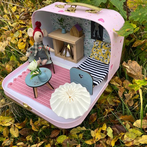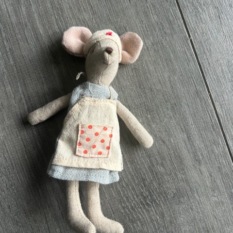 Maileg klovnemus i kuffert. Stadig med prismærker. MUS med sjove lange ben. Maileg Cirkus.