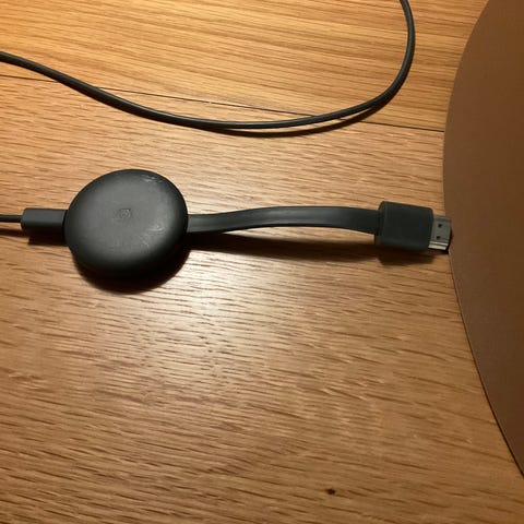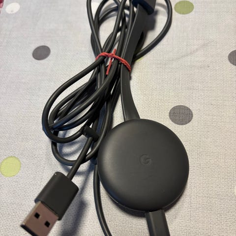 Google Chromecast HDMI streaming enhed i sort farve. Enheden tilsluttes via HDMI og USB og bruges til at streame indhold til tv-skærme.