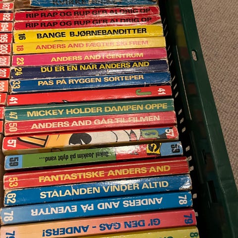 En fyldt flyttekasse udelukkende med jumbobøger. Få dubletter.