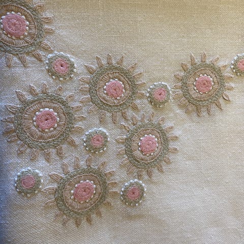 Håndbroderet dug på hørlærred