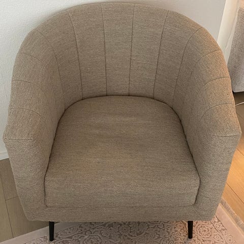 Ilva sofa med puder i brun stof. Sofaen har et enkelt design med løse rygpuder og siddepuder, der er betrukket med blødt brunt stof. Egnet til opholdsstue eller andre rum, hvor komfortabel siddeplads ønskes. Hele 3 sofaer for 1000 kr .