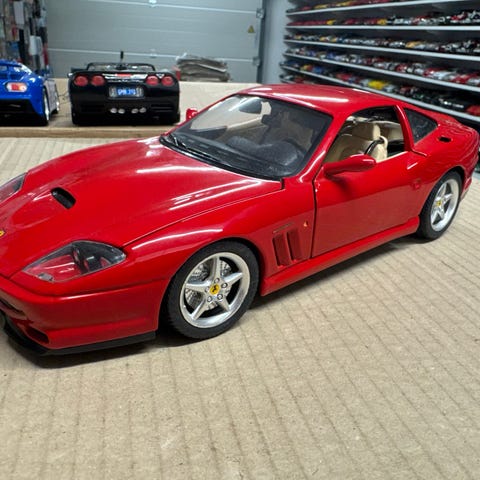 Ferrari 348tb (1989) modelbil i skala 1:18. Modellen er rød og detaljeret med realistisk design. I org. emballage. Mærke : burago