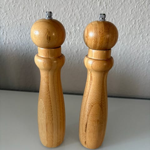 Weber Style peber- og saltsæt fremstillet i sort træ. Designet er ergonomisk med en buet form, der gør dem nemme at håndtere. Nypris er 699 kr. Kan sendes mod betaling og afhentes på adressen.