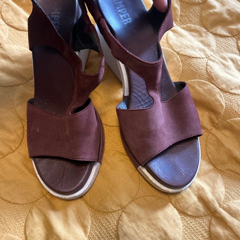 Sandaler med hæl, i hvid/sølv. Aldrig brugt
