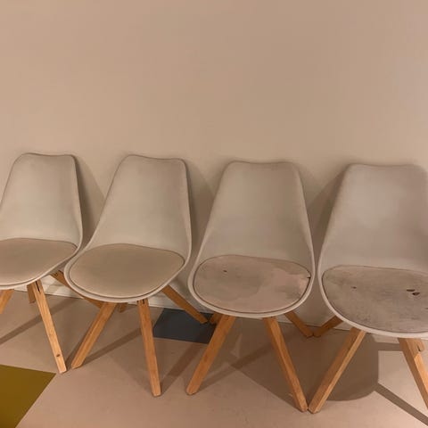 Stole er brugte og har tydelige pletter, som måske kan fjernes.