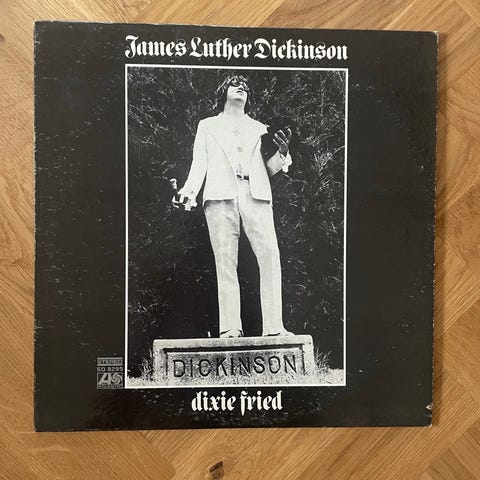 James Luther Dickinson Dixie Fried vinylplade med sort cover. Indeholder musik fra James Luther Dickinson.