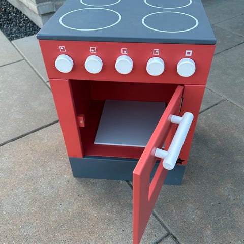 Superfint legekøkken fra Kids Wood i træ. Brugt men fungerer perfekt ift. drejeknapper og ovn-dør.
