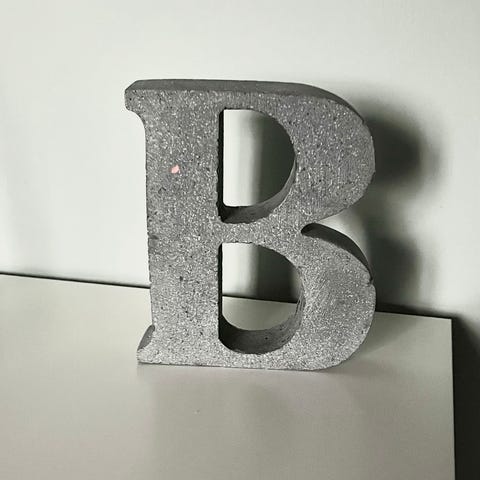 Dekorativt bogstav A i massiv beton. 17,5 cm høj, vejer 732 g. Perfekt til reol eller vindueskarm.