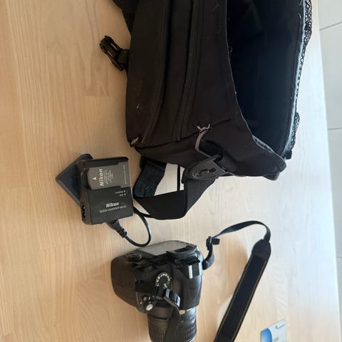 Nikon D3000 Digitalkamera med 18-55mm VR objektiv. Kameraet har en sensoropløsning på 10,2 megapixel og leveres med batteri, oplader og kamerataske. Velegnet til fotografering i forskellige situationer med mulighed for optisk billedstabilisering.