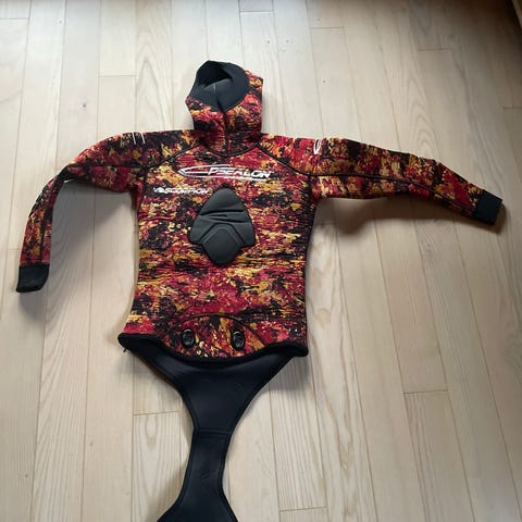 Sælger en Beuchat Espadon Équipe todelt våddragt i 5 mm neopren, ideel som begynder- eller let øvet undervandsjagtdragt. En solid og gennemprøvet model med god varmeisolering og høj komfort – perfekt til danske farvande forår, efterår og køligere sommerdage.