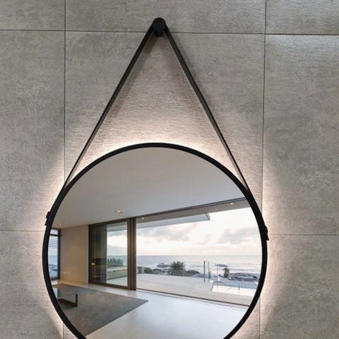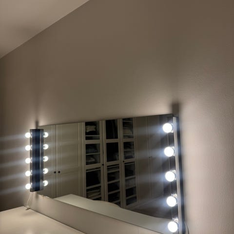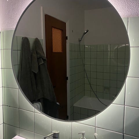 Spejlet er cirka 50cm bredt og cirka 48cm højt (højeste punkt er 48cm)