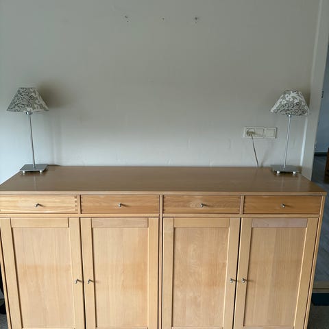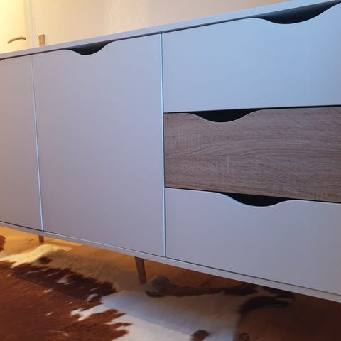 Skænk med 2 x 2 skabe og skuffer. Står som ny fra ikke ryger hjem.