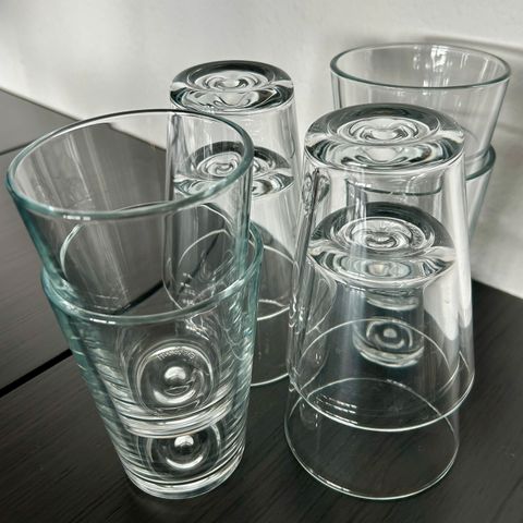 12 Eva Solo drikkeglas 34 cl. fremstillet i glas. Sættet indeholder flere glas, som er velegnede til servering af kolde drikke. Glasdesignet er enkelt og funktionelt.