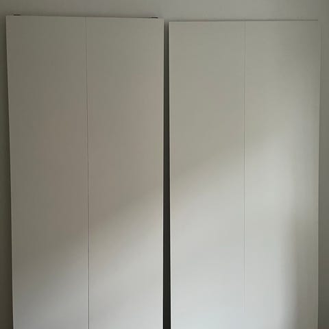 Jeg sælger et skydedørspar 150x236 cm fra IKEA der passer til Pax skab.