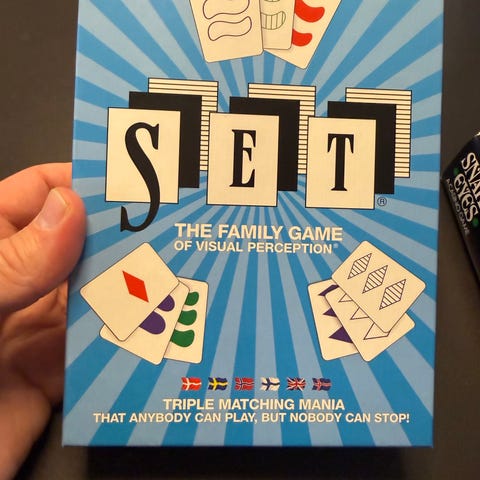 SET Familiespil kortspil med fokus på visuel opfattelse. Spillet indeholder 81 kort med forskellige former, farver, antal og skygger. Egnet til 1 eller flere spillere fra 6 år og op. Spillet leveres i en æske med instruktioner.