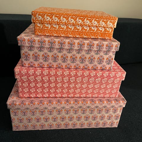 Fire opbevaringsbokse med 3 skuffer i hver.
