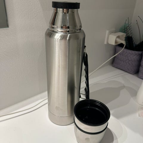 Termoflaske, kan holde drikkevarer varme i op til 12 timer, og holde kolde drikkevarer kølige i op til 24 timer.